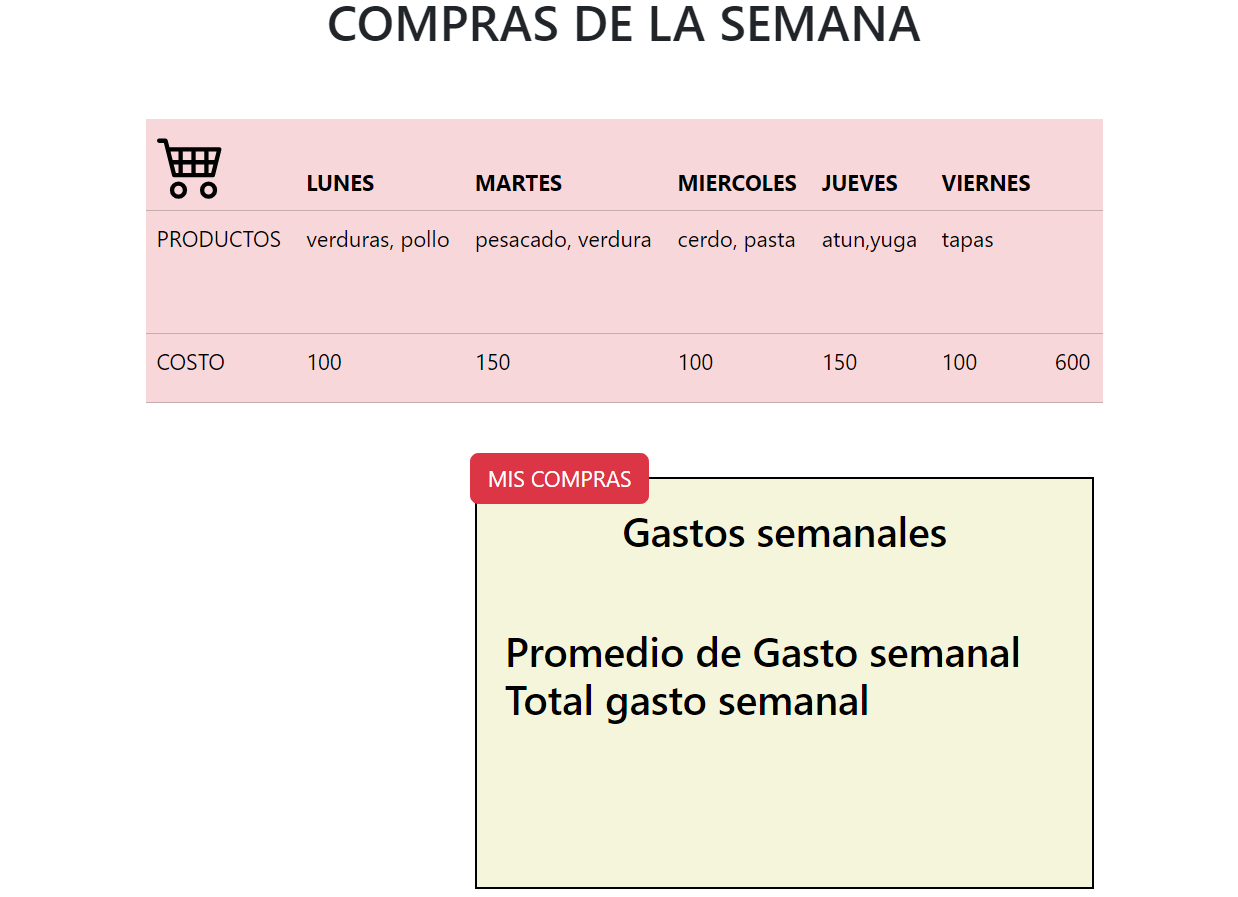 - Las compras de la semana tiene un monto de 500 euros los cuales la aplicacon debe ser capaz de indicarle si se paso del monto establecido